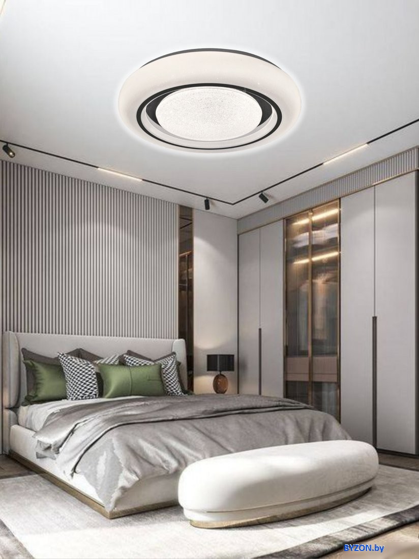 Код товара: 4543266 Рейтинг: 144 7| припотолочная люстра, плафон белый (акрил/пластик), каркас черный/белый