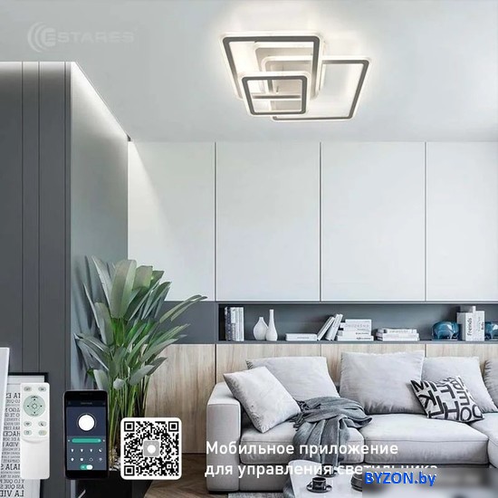 Припотолочная люстра Estares Sonne 90W 4S-APP-525x525x110-WHITE/WHITE-220-IP20 - купить в Минске