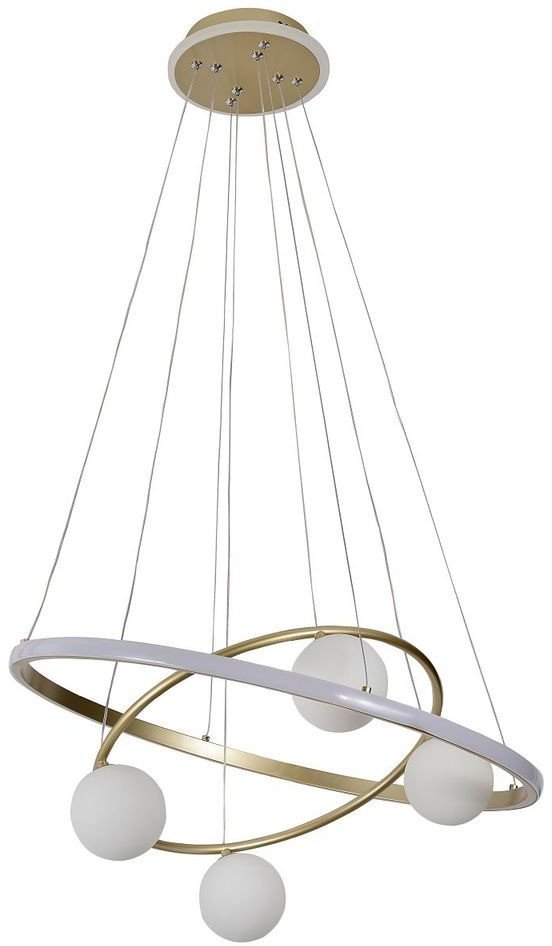 Код товара: 4545176 Рейтинг: 140 14| -4,58 подвесная люстра, плафон белый (стекло), каркас белый/золотистый