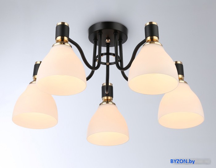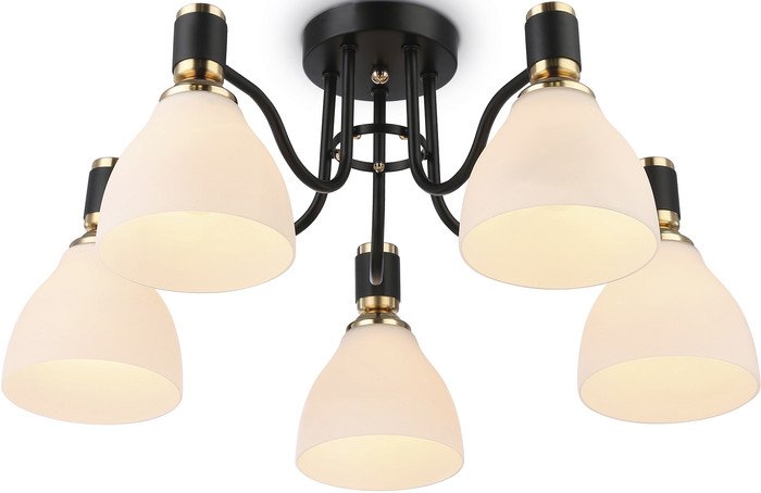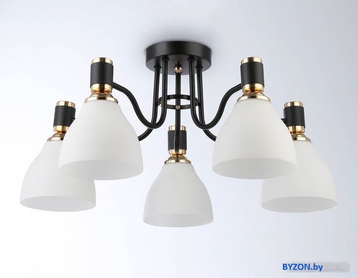 Код товара: 4483871 Рейтинг: 144 12| люстра средней высоты, плафон белый (стекло), каркас черный/золотистый