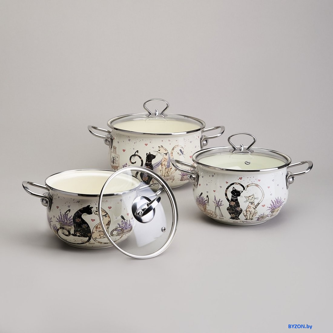| Состав набора | кастрюля (3 шт.), крышка (3 шт.) |