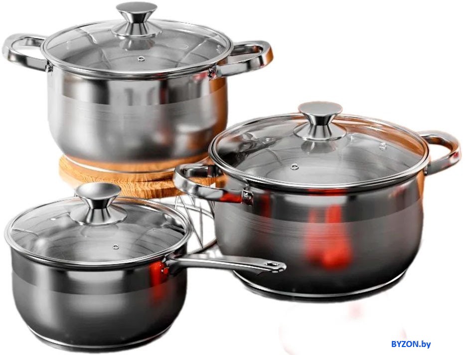 Код товара: 4835568 Рейтинг: 144 8| набор кастрюль, нержавеющая сталь, покрытие отсутствует, крышка стеклянная