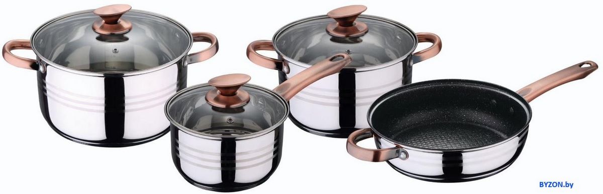 | Состав набора | ковш 1.5 л, сковорода 24 см, кастрюли 6.1 л и 3,6 л |