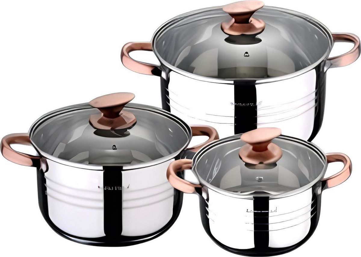 Код товара: 4833381 Рейтинг: 59 2| -44,33 набор кастрюль, 6.1 л (24 см), нержавеющая сталь, покрытие отсутствует, крышка стеклянная