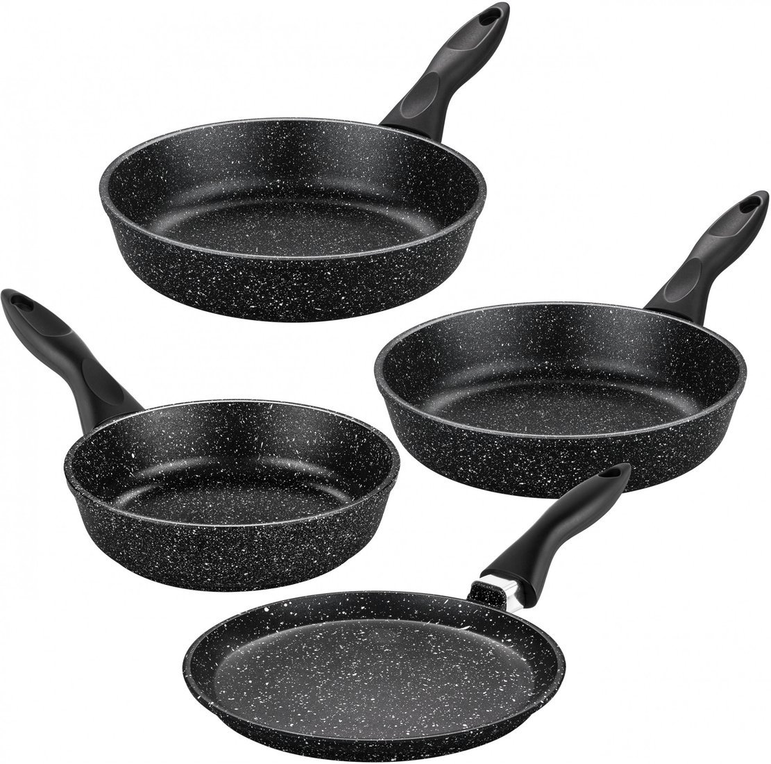 | Состав набора | 3 глубоких сковороды, блинная сковорода |