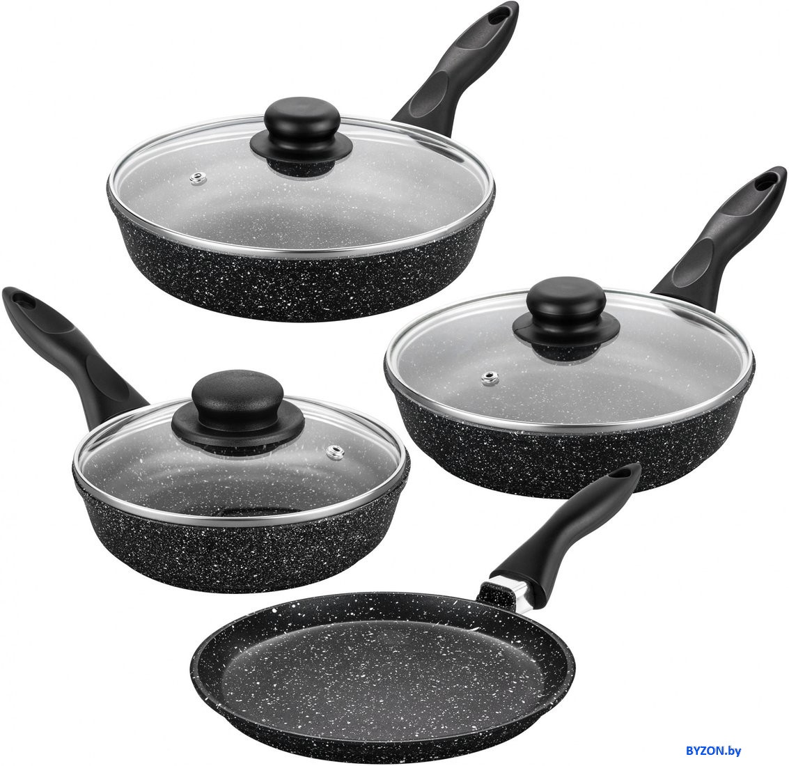 Набор сковород Elan Gallery Гармония вкуса 120112+4 (черный мрамор) - купить в Минске