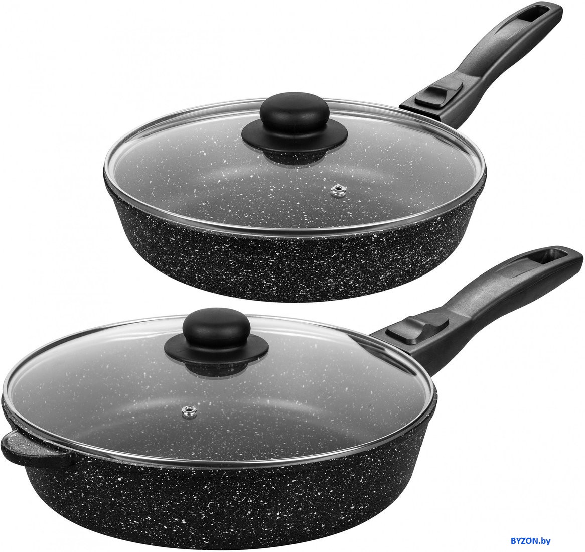 Набор сковород Elan Gallery Гармония вкуса 120134+2 (черный мрамор) - купить в Минске