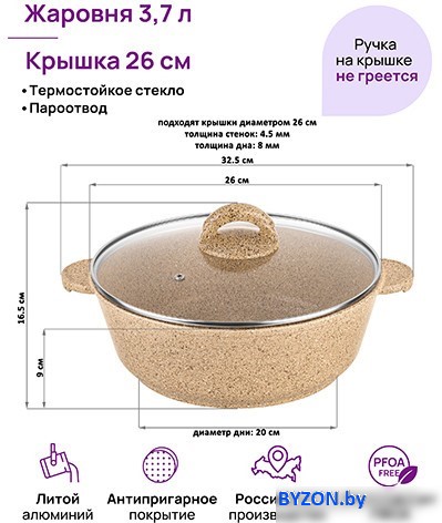 Код товара: 4341029 Рейтинг: 62 2| -43,12 жаровня, алюминий, 26 см, стеклянная крышка, алюминиевая ручка