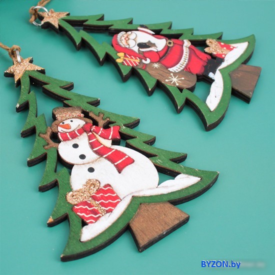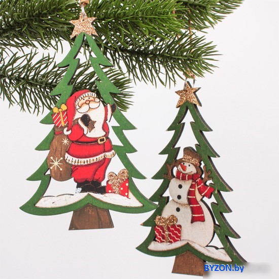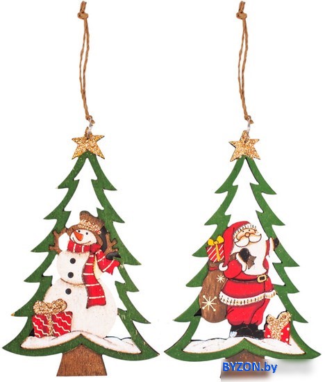 Код товара: 4263372 Рейтинг: 177 8| елочная игрушка (набор 2 шт), снеговик/елка/свеча, цвет белый/зеленый/красный