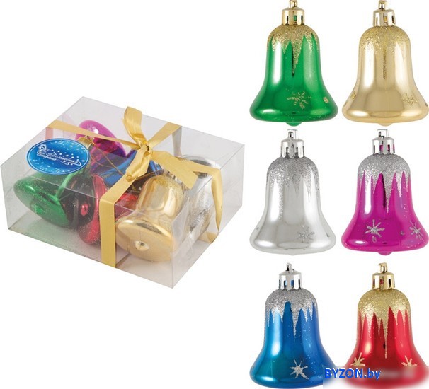 Код товара: 4510124 Рейтинг: 177 18| елочная игрушка (набор 6 шт), колокольчик, цвет ассорти, длина 6 см