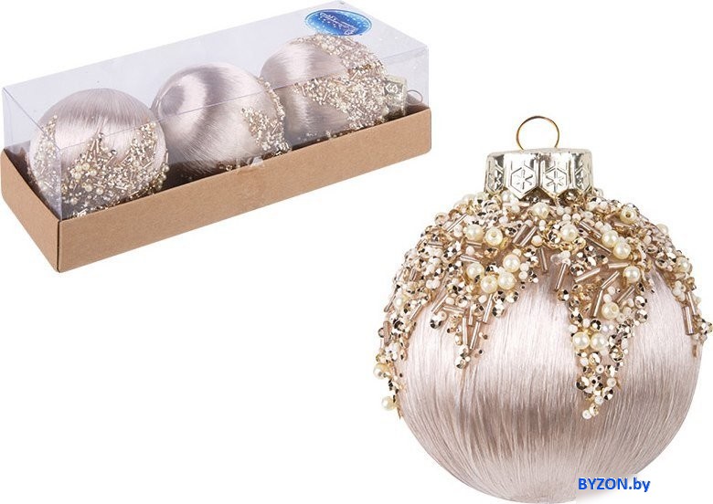 Код товара: 4717417 Рейтинг: 177 18| елочная игрушка (набор 3 шт), шар, цвет бежевый/золотистый, диаметр 8 см