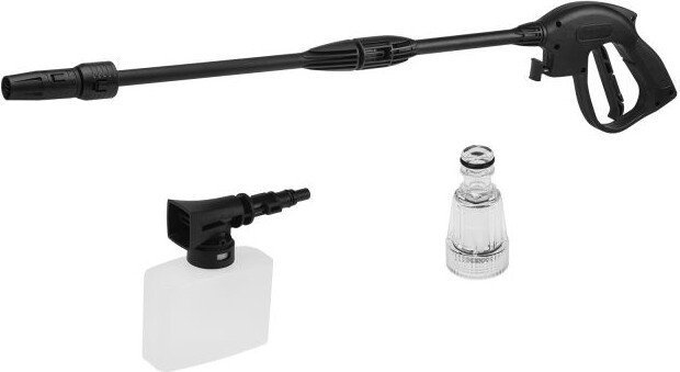 | Комплектация | - Очиститель высокого давления – 1 шт.; - Моечный пистолет – 1 шт.; - Шланг высокого давления 3м – 1 шт.; - Удлинительная трубка – 1 шт.; - Веерная фреза – 1 шт.; - Пеногенератор – 1 шт.; - Мини-фильтр тонкой очистки 1/2” – 1 шт.; - Коннектор HPC 1/2” – 1 шт.; - Инструмент для чистки форсунки – 1 шт.; - Винт 4*16 мм – 2 шт.; - Винт 4*22 мм – 2 шт.; - Руководство по эксплуатации – 1 шт.; - Упаковка |
