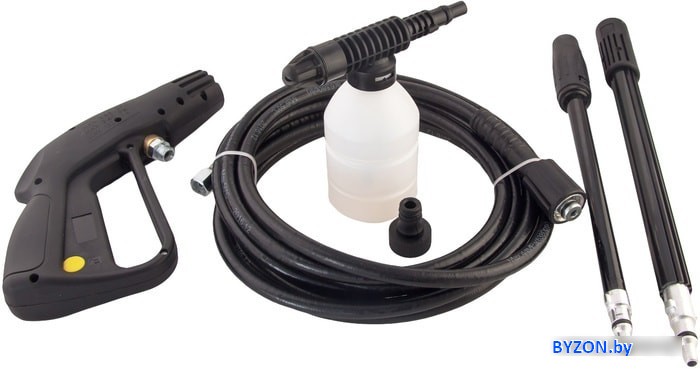 | Комплектация | пистолет-распылитель, удлинитель пистолета с соплом, гибкий шланг высокого давления, емкость для моющих средств, переходник, игла для очистки сопла |