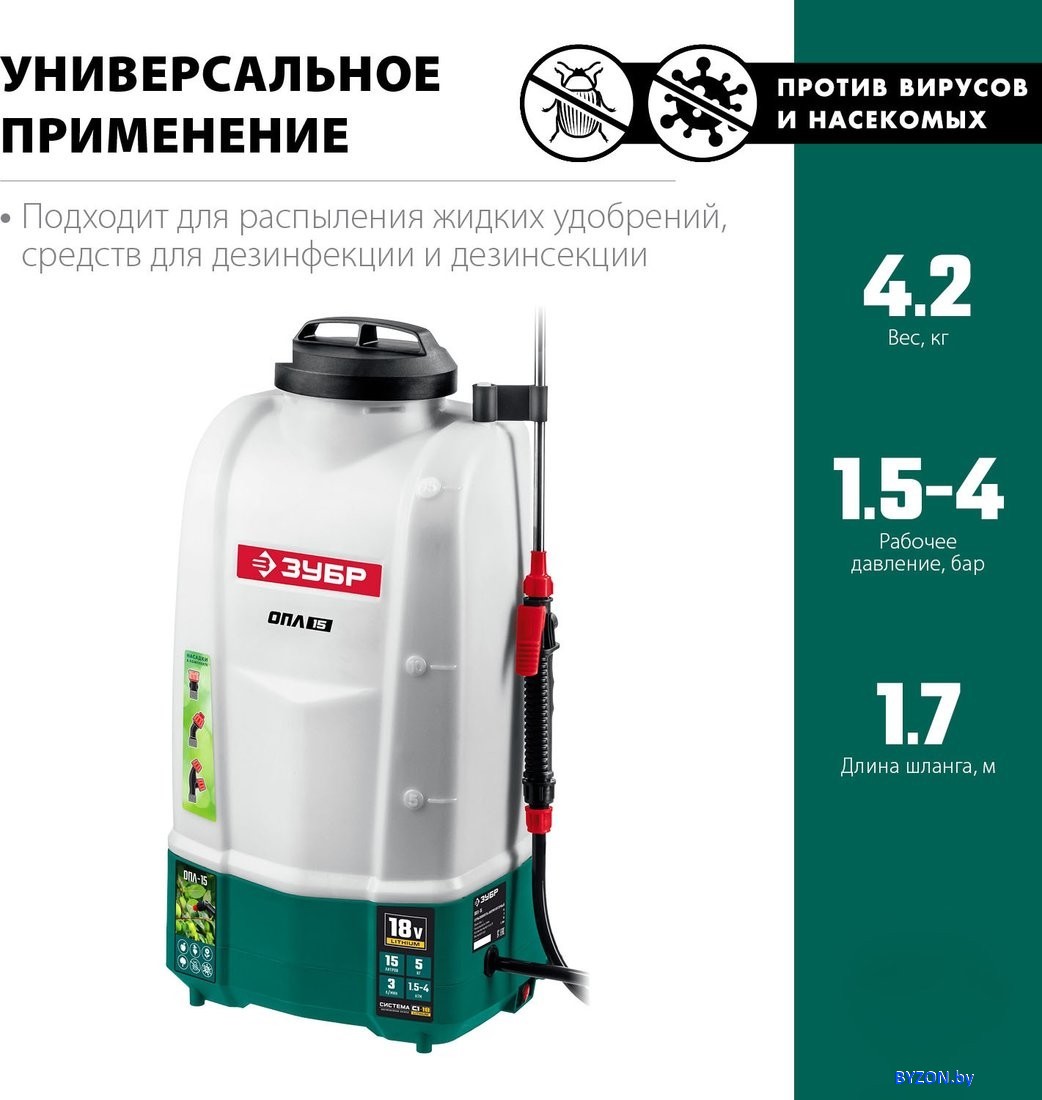 Аккумуляторный опрыскиватель Зубр ОПЛ-15 (без АКБ) - купить в Минске