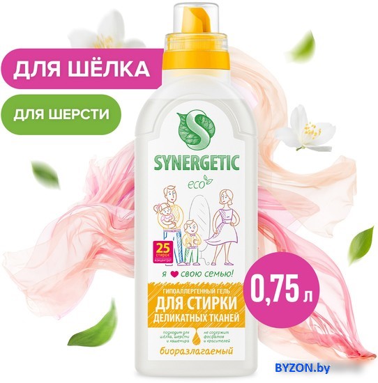 Гель для стирки Synergetic Биоразлагаемый концентрированный для деликатных тканей 750 мл - купить в Минске
