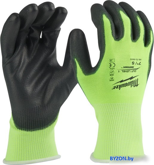Перчатки хозяйственные Milwaukee Hi-Vis Cut level 1/A 7/S 4932479916 - купить в Минске