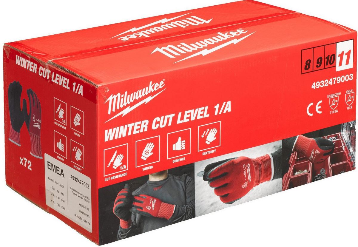 | Информация | - Перчатки Milwaukee Winter Cut level 1/A 9/L 4932479001 обеспечивают тепло и комфорт при работе в холодных условиях благодаря теплой подкладке и двойной нити. - Они предназначены для защиты и комфорта в течение всего дня, идеальны для переноски материалов и легких строительных работ. - Защита ладони обеспечивается покрытием из нитрила, а также перчатки обеспечивают точность при работе с мелкими деталями. - SMARTSWIPE™ на ладонях и кончиках пальцев позволяют пользоваться устройствами с активными экранами без снятия перчаток. - Они сертифицированы в Европе на сопротивление порезам и устойчивость к холоду: EN420, EN388:2016 (1141A), EN511 (01X). |