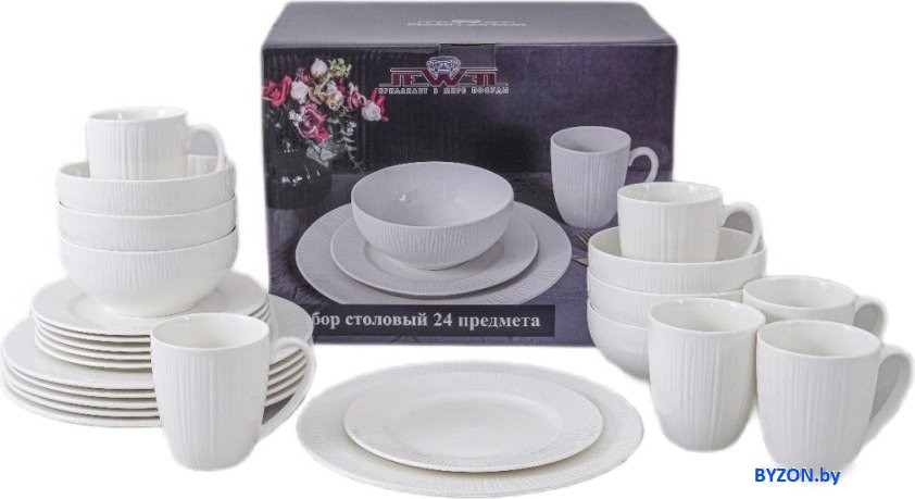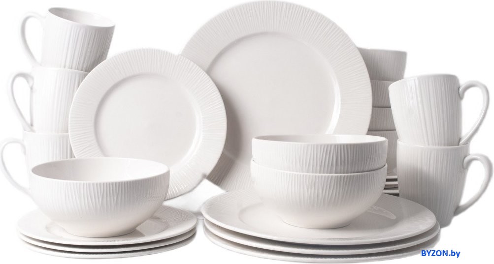 | Состав набора | тарелка столовая обеденная (6 шт.), тарелка закусочная (десертная) (6 шт.), салатник (6 шт.), кружка (6 шт.) |
