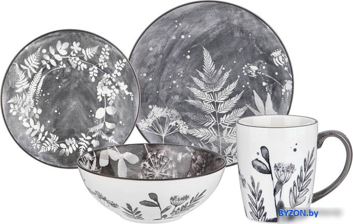 | Состав набора | тарелка обеденная 25см - 4 шт., тарелка закусочная 20,5 - 4 шт, салатник 16см 600 мл - 4 шт., кружка 350 мл - 4 шт. |