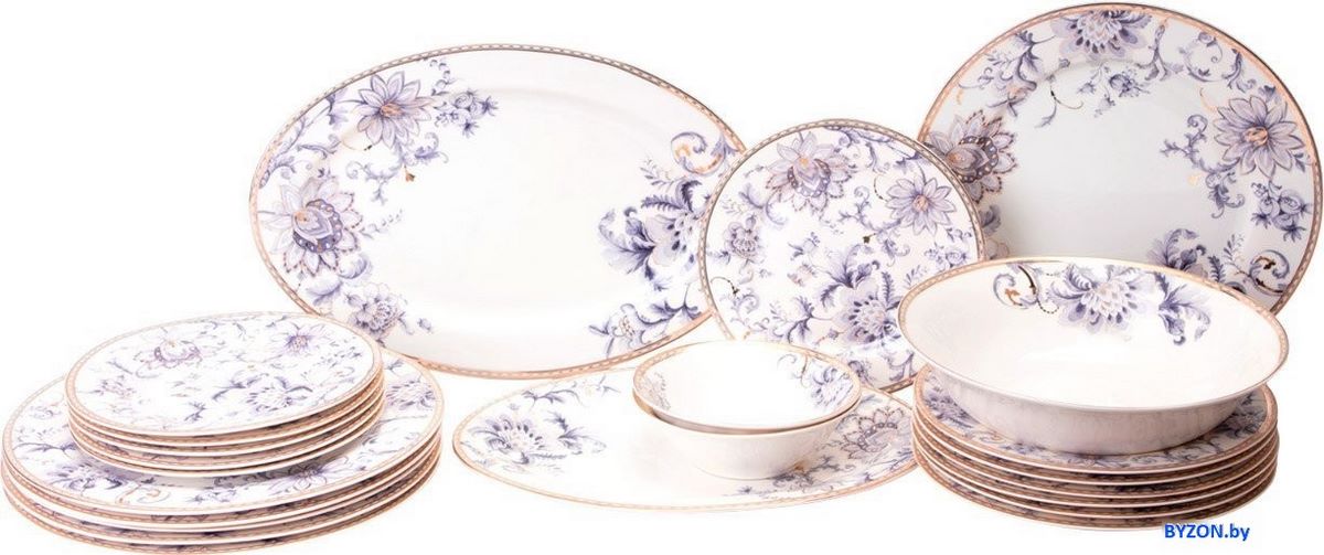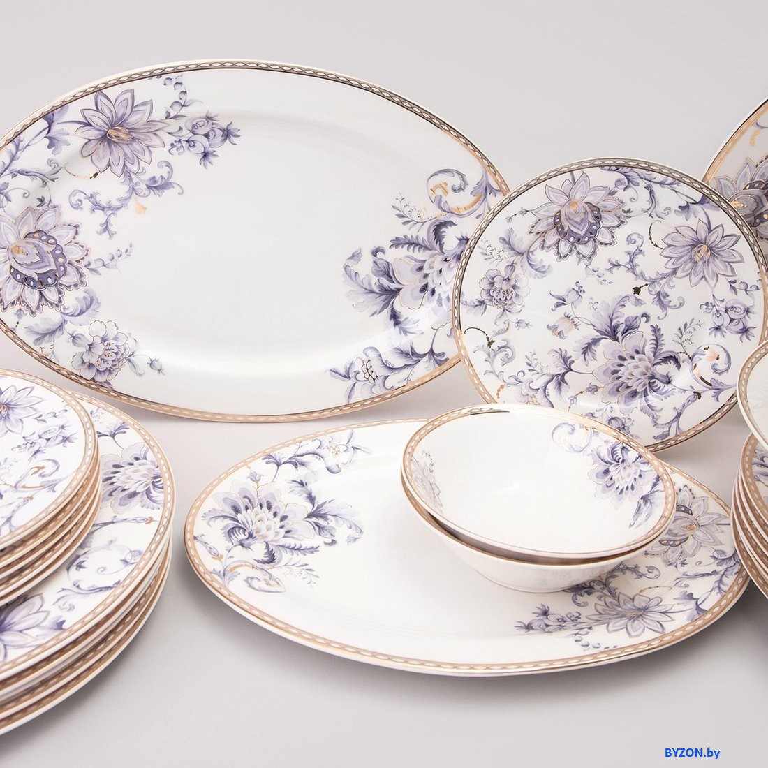 Код товара: 4704606 Рейтинг: 88 12| -5,29 для закусок, 23 предмета, фарфор, цвет белый/фиолетовый/золотистый