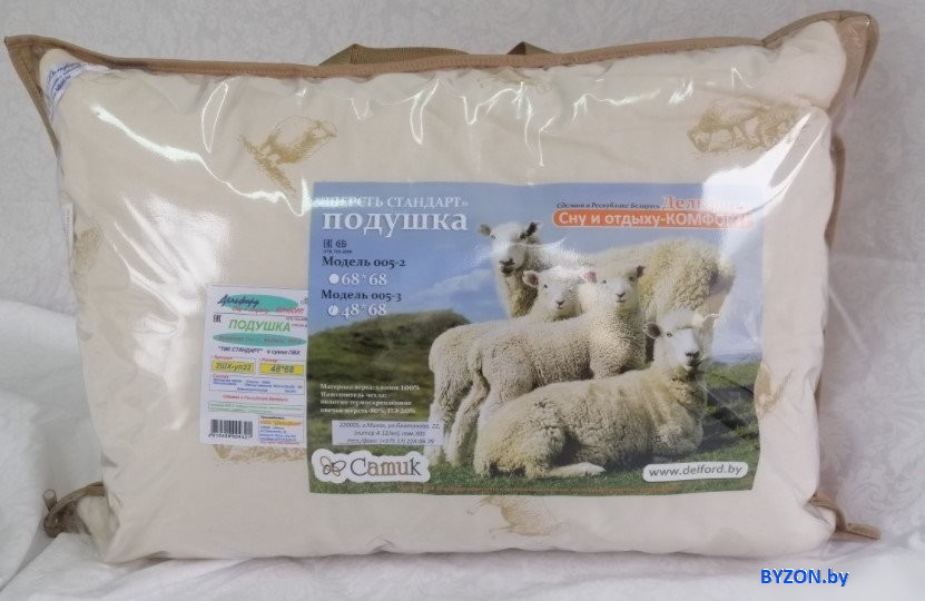Спальная подушка Delford Шерсть Стандарт ПВХ 2ШХ-УП22 (48x68) - купить в Минске