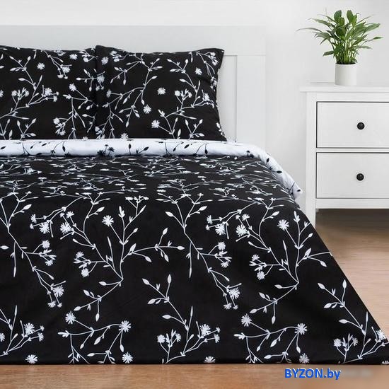 Код товара: 3562801   Рейтинг: 58  19| -33,84 1.5-спальный, поплин, пододеяльник 143x215 см, простыня 150x214 см, наволочка 70x70 см, белый/черный