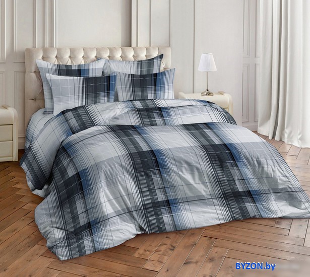Код товара: 4495318   Рейтинг: 58  16| -34,61 2-спальный, поплин, пододеяльник 175x217 см, простыня 200x217 см, наволочка 70x70 см, серый/синий/черный