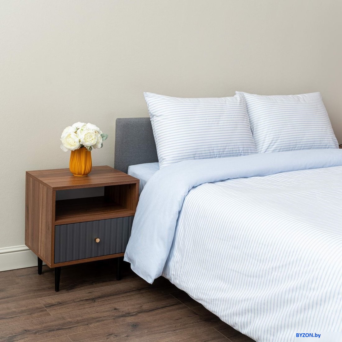 Код товара: 4813307   Рейтинг: 144  14|  2-спальный, ранфорс, пододеяльник 175x215 см, простыня 220x240 см, наволочка 50x70 см, голубой/белый