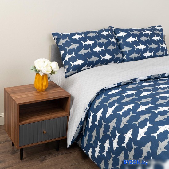 Код товара: 4394936   Рейтинг: 63  14| -27,05 семейный, ранфорс, пододеяльник 145x215 см, простыня 220x240 см, наволочка 50x70 см, белый/серый/синий