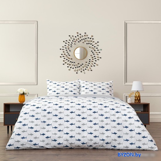 Код товара: 4394937   Рейтинг: 60  14| -31,18 евро, ранфорс, пододеяльник 200x220 см, простыня 220x240 см, наволочка 50x70 см, белый/серый/синий