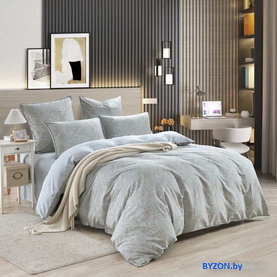 Код товара: 4395117   Рейтинг: 74  14| -11,8 1.5-спальный, сатин, пододеяльник 160x220 см, наволочка 50x70 см, голубой/серый