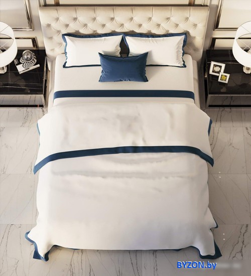 Код товара: 4494281   Рейтинг: 70  14| -17,26 1.5-спальный, мако-сатин, пододеяльник 160x220 см, простыня 180x230 см, наволочка 50x70 см, белый/синий