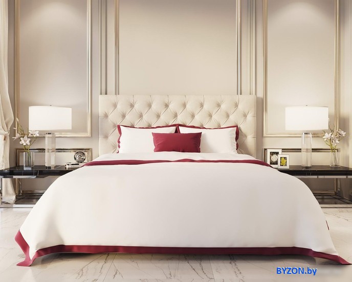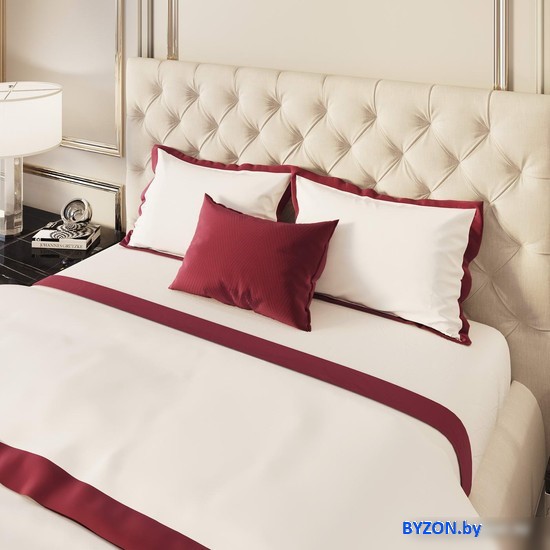 Код товара: 4494293   Рейтинг: 77  14| -7,72 евро, мако-сатин, пододеяльник 200x220 см, простыня 230x250 см, наволочка 50x70 см, белый/красный