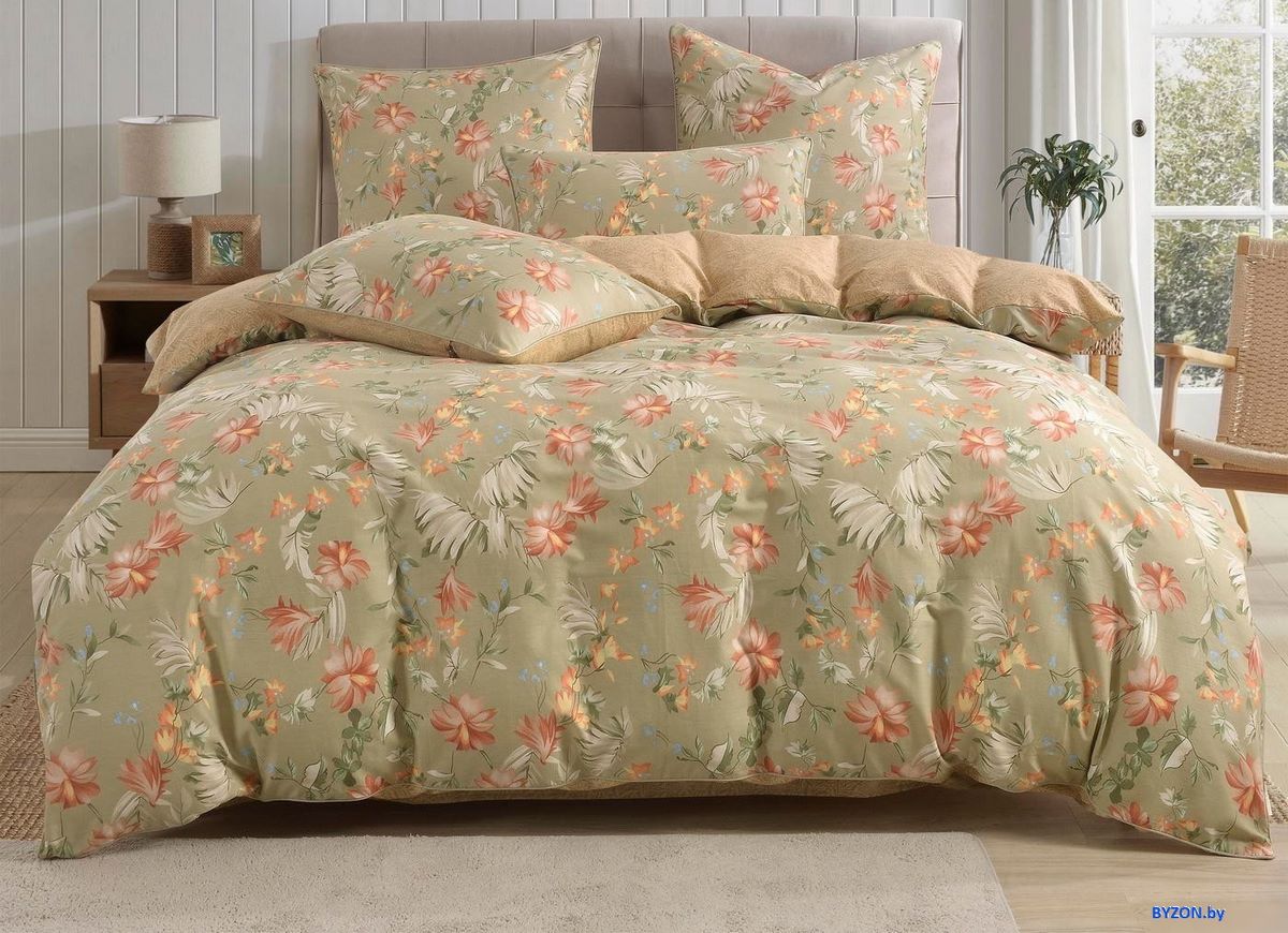 Код товара: 4813349   Рейтинг: 144  14|  2-спальный, сатин, пододеяльник 175x215 см, простыня 230x250 см, наволочка 50x70 см, бежевый/зеленый