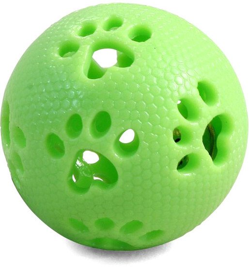 | Информация | Мяч из термопластичной резины с колокольчиком внутри. Преимущество этой игрушки — эластичная и мягкая резина, которая не травмирует десны при жевании и способствуют очищению зубов и массажу десен собаки в процессе игры. |