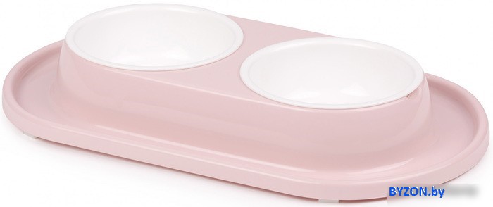 Код товара: 3654519 Рейтинг: 177 8| двойная миска, 0.3 л, для кошек/для собак, пластик, белый/розовый