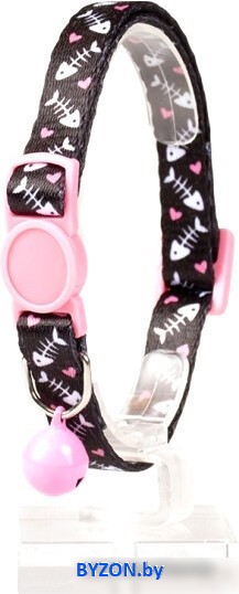 Код товара: 3617521 Рейтинг: 58 9| -55,46 ошейник, для кошек, диаметр 10 мм, обхват ошейника 20-30 см, нейлон/металл/пластик, черный/розовый