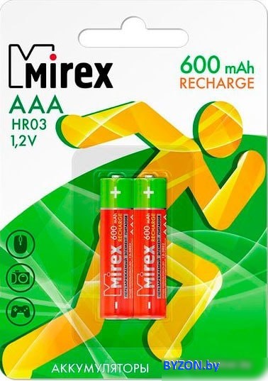 Аккумуляторы Mirex AAA 600mAh 2 шт HR03-06-E2 - купить в Минске