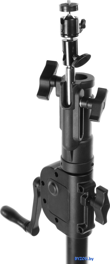 | Комплектация | - Стойка с редукторной колонной, складным основанием и колесами - Адаптер - Шаровая мини-головка - Руководство по эксплуатации и гарантийный талон |