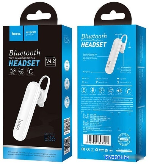 Bluetooth гарнитура Hoco E36 (белый) - купить в Минске