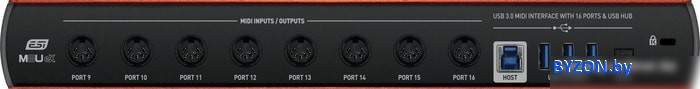 Информация | Внешний модуль MIDI интерфейса. Устройство имеет 16 совмещенных входов/выходов MIDI, а также USB-хаб на 3 порта. Внешний блок питания входит в комплект поставки. |