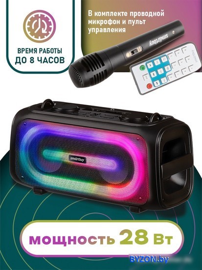 | Информация | ? Smartbuy AGILITY - идеальное решение для домашней караоке-вечеринки или пикника. ? Два широкополосных 100м динамика обеспечивают отличное качество звука для воспроизведения различных музыкальных жанров. ? Полный функционал включает в себя Bluetooth 5.0, MP3-плеер (USB / MicroSD, до 256Гб), и FM-радио. ? Возможность объединить две колонки в стерео пару для получения 56 Вт объемного звука. ? В комплекте имеется микрофон и пульт дистанционного управления. |