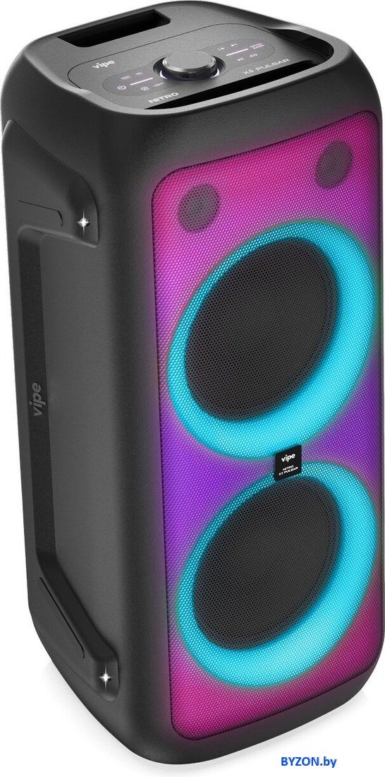 | Информация | - Vipe NITRO X5 Pulsar MKII — это мощная портативная аудиосистема для вечеринок с обновлёнными динамиками, выдающейся чувствительностью и кристально чистым звуком. Благодаря мощности 120 Вт и двухполосной конструкции модель обеспечивает глубокие басы и детальную проработку высоких частот на любой громкости. - Фронтальная панель оснащена яркой Full LED-подсветкой, а четыре неоновых стробоскопа синхронизируются с ритмом музыки, превращая любое пространство в настоящий танцпол. Подсветка полностью настраивается через фирменное приложение MyVipe, позволяя выбрать цвет и режим свечения под настроение. - Встроенный аккумулятор ёмкостью 4500 мАч обеспечивает до 8 часов автономной работы, а поддержка быстрой зарядки внешних устройств через USB Type-C превращает колонку в удобный пауэрбанк. Для подключения различных источников предусмотрены Bluetooth 5.3, AUX-вход, USB Type-C, а также разъёмы для микрофона и гитары. - Vipe NITRO X5 Pulsar MKII поддерживает режим беспроводной стереопары (TWS), имеет защиту от брызг по стандарту IPX4, оснащена колёсами и ручкой для удобной транспортировки. Модель идеально подойдёт для вечеринок, караоке и уличных мероприятий, предлагая широкий набор функций, качественный звук и стильный дизайн. |