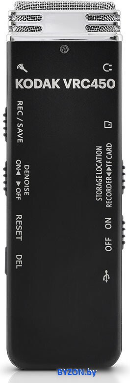 | Информация | The compact metal design and intuitive operation of the KODAK VRC450 digital voice recorder is your convenient every day option for instantly recording quality audio in WAV/MP3 formats. Its lithium battery and micro-SD card slot make it equally suited to recording brief ideas or several hours of interview, and is adaptable to any use thanks to its hands-free recording and noise reduction functions. Its many advantages include its loudspeaker and its Plug & Play technology making it easy for you to listen to and take full advantage of your saved recordings. |