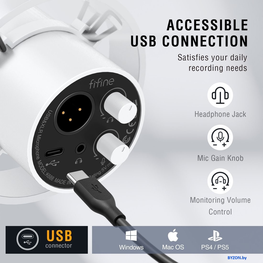 Проводной микрофон FIFINE K688 (белый) - купить в Минске