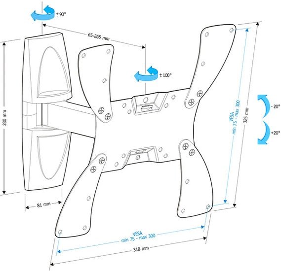 Код товара: 1759305 Рейтинг: 56 6| -32,55 настенный кронштейн для ЖК-телевизора 19-40", наклон 20°, поворот 100°, цвет белый