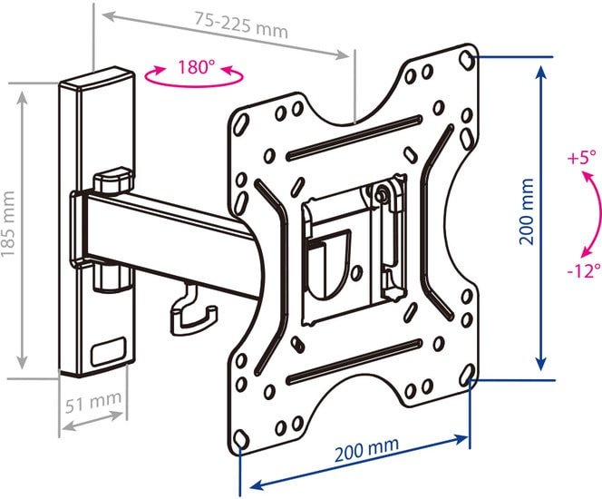 Код товара: 2320368 Рейтинг: 177 4| настенный кронштейн для ЖК-телевизора 20-43", наклон 12°, поворот 180°, цвет черный