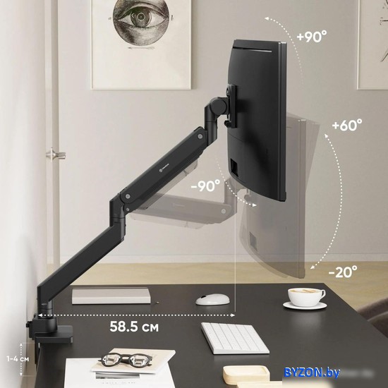 Код товара: 4495519 Рейтинг: 113 6| -216,88 для мониторов, 17-57", настольный, поворотный, с регулировкой высоты, кабель-канал, наклон 25°, поворот 180°, цвет черный