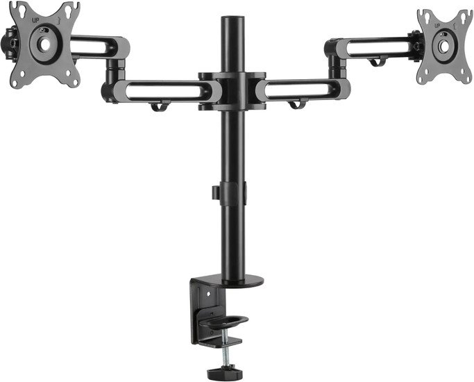Код товара: 4407418 Рейтинг: 80 6| -69,48 для мониторов, 17-32", 2 монитора, настольный, поворотный, с регулировкой высоты, кабель-канал, наклон 30°, поворот 180°, цвет черный