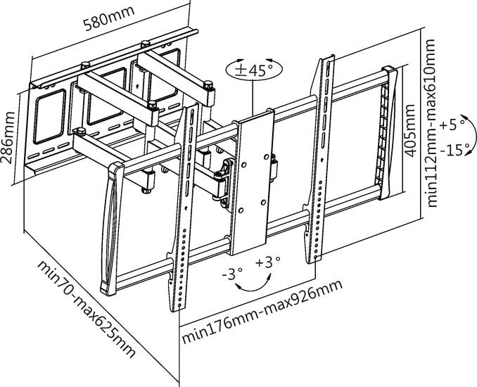 Код товара: 2062371 Рейтинг: 107 6| -94,17 настенный кронштейн для ЖК-телевизора 60-100", наклон 15°, поворот 45°, цвет черный